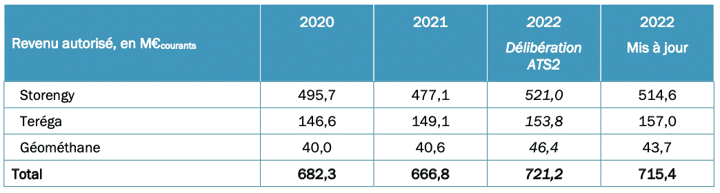 Pour Storengy, la hausse est de 7,9% par rapport au revenu autorisé de 2021. Elle est de 5,3% pour Teréga et 7,7% pour Géométhane.